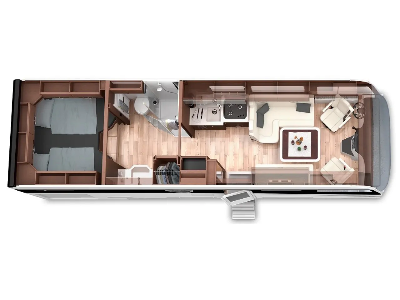 | Bettsystem | Alkovenbett/Hubbett, festes Doppelbett längs |