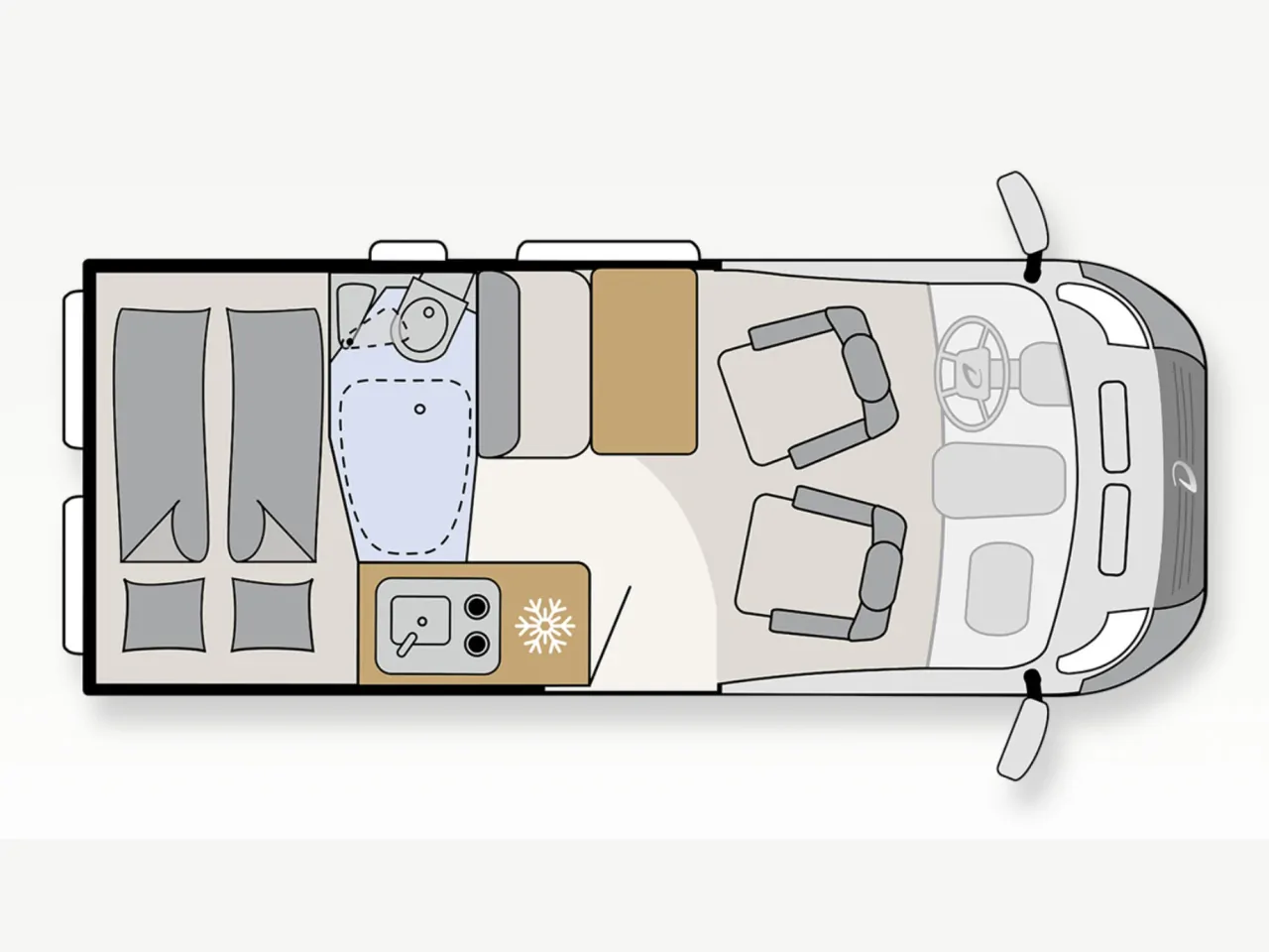 | Bettsystem | festes Doppelbett quer, umbaubare Liegefläche |